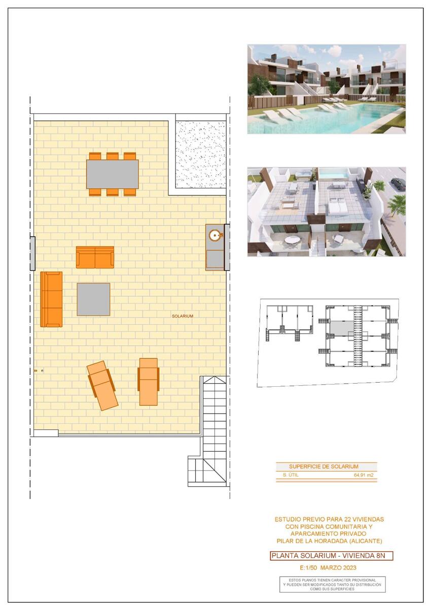 ÚJ ÉPÍTÉSŰ BUNGALÓ LAKÁSOK LAKÓÉPÜLETE PILAR DE LA HORADADÁBAN Új építés egy exkluzív lakókomplexum, amely 22 kiváló minőségű bungaló apartmanból áll, PORCELANOSA kivitelben Pilar de la Horadada-ban. Modern bungalók 2 hálószobával, 2 fürdőszobával, nyitott terű konyhával, nappalival, beépített szekrényekkel. A földszinti házak nagy kerttel rendelkeznek, műfűvel burkolva, a legfelső emeleten pedig egész évben élvezheti a napsütést a teraszon és a szoláriumban, valamint a közösségi térben medencével és kényelmes parkolóhellyel. Pilar de la Horadada egy tipikus spanyol falu a Costa Blanca legdélebbi részén. A nagy főutcán szupermarketek, sok üzlet, étterem és bár, valamint néhány szép tér található. Torre de la Horadada és Mil Palmeras gyönyörű strandjai finom homokos sétánycal mindössze 5 percre találhatók. Corvera (Murcia) és Alicante repülőtere 40, illetve 55 percre található.