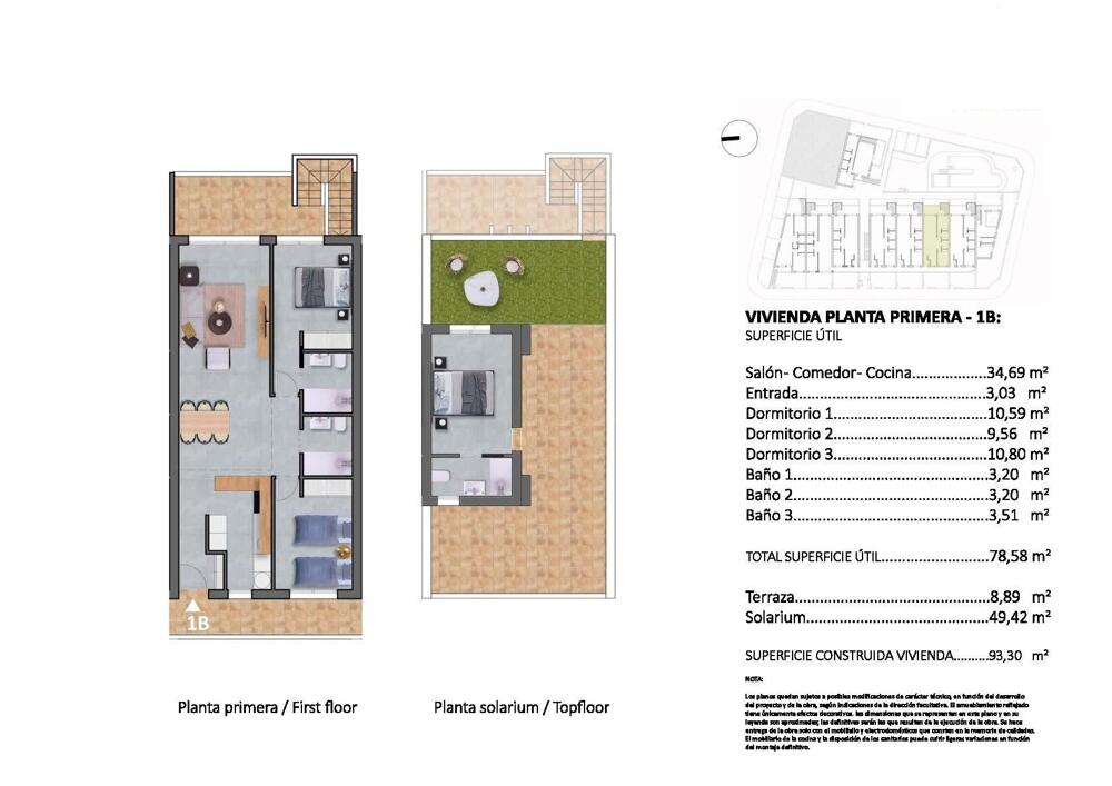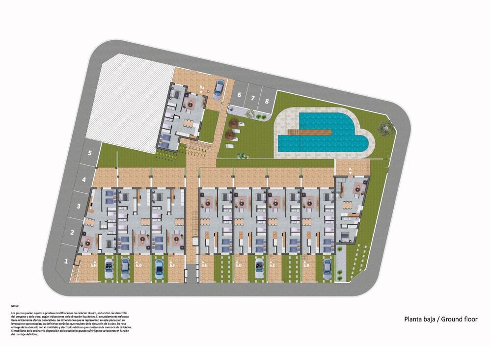 Egyedülálló lakóhely a Földközi-tenger élvezetéhez Üdvözöljük ebben az exkluzív, 16 bungalóval és egy sarokházból álló, 2 és 3 hálószobás sorházból, amelyet azok számára terveztek, akik életminőséget és kényelmet keresnek a Costa Blancán. A Pilar de la Horadada központjától mindössze egy rövid sétára található, modern komplexum nyugodt környezetben található, és minden kényelmi szolgáltatás könnyen megközelíthető. Az otthonokat úgy tervezték, hogy maximalizálják tulajdonosaik jólétét: földszintek előkerttel és hátsó terasszal. A legfelső emeletek saját terasszal és szoláriummal rendelkeznek, ahonnan csodálatos kilátás nyílik. Egy sarokház, több tágassággal és magánélettel. A lakóépület zöldterületekkel körülvett nagy közös medencével rendelkezik, amely ideális a mediterrán nap alatti pihenéshez. Modern dizájn és kiváló minőségű kivitel Minden ingatlant gondosan terveztek, hogy fényességet, funkcionalitást és modern stílust kínáljon. Páncélozott bejárati ajtó a nagyobb biztonság érdekében. Nyitott koncepciójú konyha, a nappaliba integrálva a kényelem érdekében. Modern fürdőszobák zuhanytálcákkal és edzett üveg paravánokkal. Légkondicionáló előzetes telepítése a nappaliban és a hálószobákban. Melegvíz-előállítás egyedi ventilátoros fűtéssel a nagyobb energiahatékonyság érdekében. Felső emeletek kültéri konyha előzetes beépítésével a szoláriumokban. Ezen kívül a fejlesztéshez kerékpárparkoló és ingatlanonként saját parkolóhely tartozik. Pilar de la Horadada - Egy egész éves lakóhely Az Alicante tartományban található Pilar de la Horadada ideális úti cél azok számára, akik a nyugalmat, a természetet és az első osztályú szolgáltatásokat szeretnék ötvözni. Gyönyörű strandjai, mint például a Playa de las Higuericas, mindössze néhány percre találhatók, és aranyszínű homokot kínálnak a kristálytiszta mediterrán vizben. Ez a fejlesztés verhetetlen elhelyezkedéssel rendelkezik, ahol gyalogosan elérhetők a szupermarketek, üzletek, éttermek és szabadidős létesítmények. A környéken túraútvonalak, kerékpárutak és számos sportolási lehetőség is található. Főbb távolságok a főbb látnivalóktól Torre de la Horadada strand - 3 km (5 perc autóval). Lo Romero golfpálya - 5 km (10 perc autóval). La Zenia Boulevard bevásárlóközpont - 15 km (15 perc autóval). Corvera repülőtér (Murcia) - 40 km (40 perc autóval). Alicante repülőtér - 55 km (55 perc autóval). Foglalja le Costa Blanca-i ingatlanát még ma Ne hagyja ki a lehetőséget, hogy vadonatúj ingatlant vásároljon verhetetlen helyen. További információért és megtekintés megszervezéséért lépjen kapcsolatba velünk még ma.