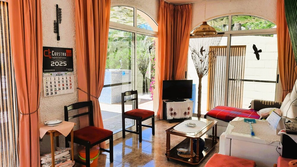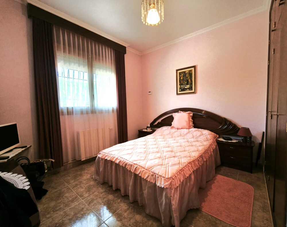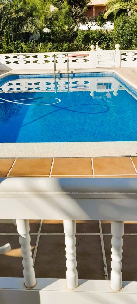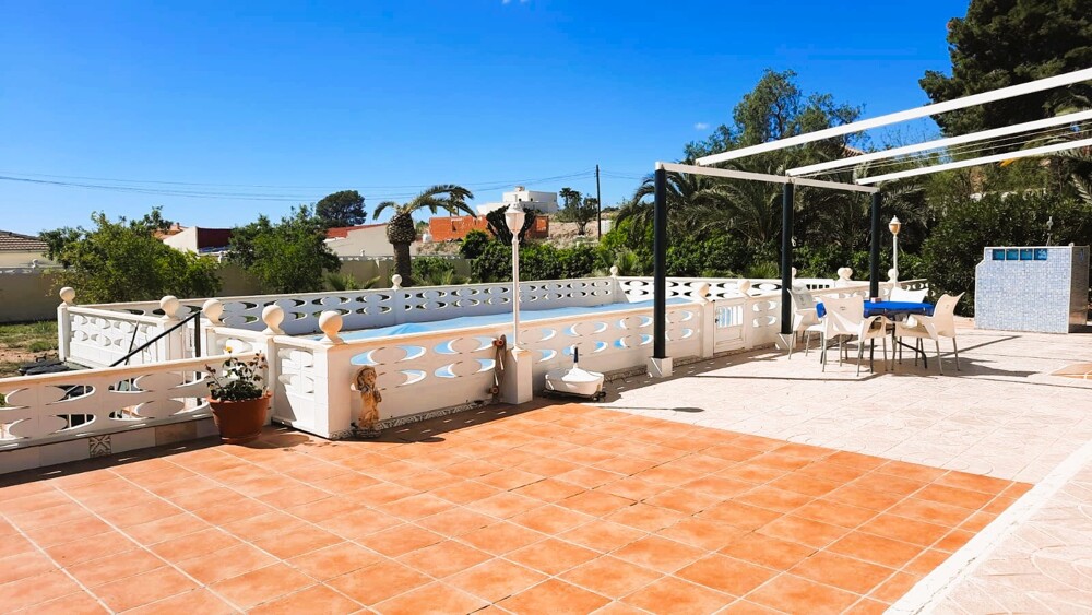 Fedezze fel ezt a szép villát Valle del Sol csendes lakónegyedében, Mutxamelben, Alicantében. A széles, 2.000 m2-es telken elterülő vonzó ház 132 m2 beépített területtel rendelkezik, három nagy kétágyas hálószobával, beépített szekrénnyel és egy teljesen felszerelt fürdőszobával. A teljesen felszerelt konyhában minden megtalálható, a kerámia csempe padló és a tömörfa külső és belső asztalos hangulatot biztosít. A kényelmes és kényelmes életmódot biztosítja az automatikus járműbejárati kapu és a 14 000 literes víztartály általános vízszűrővel. A gyümölcsfás nagy telek az új tulajdonos saját igényei és ízlése szerint tervezze meg. Ez a csodálatos ház számos vonzó extrával rendelkezik: Olaj központi fűtés és légkondicionálás Biztonsági riasztórendszer Saját medence Üvegezett terasz egész éves használatra Megerősített bejárati ajtó Kültéri grillező kéményrel Vízlágyító rendszer Zárt garázs és fedett parkolóhely Virágzó kert gyümölcsfákkal Kültéri konyha Két tároló Kültéri fürdőszoba és zuhanyzó a medence mellett Ha állandó lakóhelyet keres, nyaralóház, vagy befektetési lehetőség, ez a villa a kényelem, a biztonság és a mediterrán jelleg menedéke Mutxamel egyik legnépszerűbb területén.