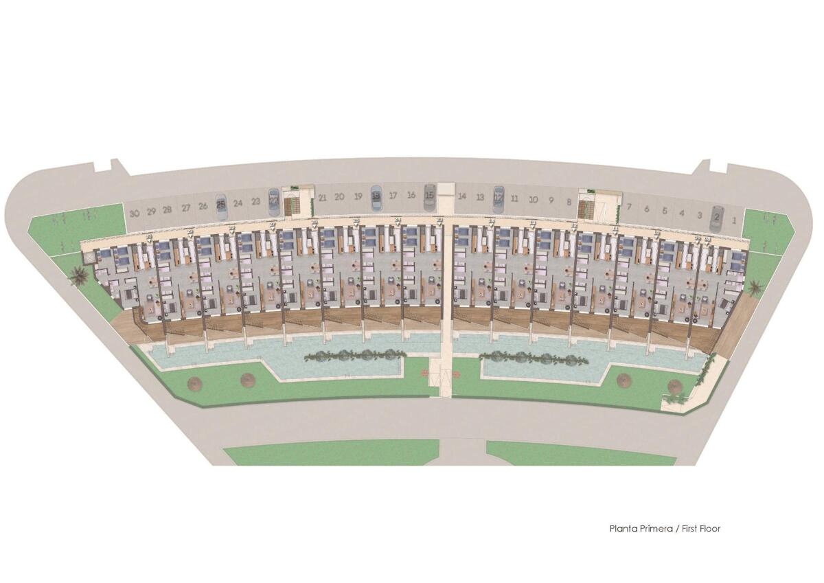 ÚJ ÉPÍTÉSŰ BUNGALÓ LAKÁSOK LAKÓÉPÜLETE PILAR DE LA HORADADÁBAN Új építésű 30 bungaló lakóház, a legfelső emeleten saját szoláriummal, a földszinten pedig gyönyörű terasszal és közvetlen hozzáféréssel a medencéhez. Modern bungalók 2 és 3 hálószobával, valamint 2 és 3 fürdőszobával, nyitott terű konyhával, nappalival, beépített szekrényekkel. Minden ingatlanhoz tartozik parkolóhely. Lakóépület közös medencével. A komplexum közel található az összes szolgáltatáshoz, mindössze 300 méterre Pilar de la Horadada városközpontjától és kevesebb mint 3 km-re a strandtól, a Costa Blanca szívében. Pilar de la Horadada egy tipikus spanyol falu a Costa Blanca legdélebbi részén. A nagy főutcán szupermarketek, sok üzlet, étterem és bár, valamint néhány szép tér található. Torre de la Horadada és Mil Palmeras gyönyörű strandjai finom homokos sétánycal mindössze 5 percre találhatók. Corvera (Murcia) és Alicante repülőtere 40, illetve 55 percre található.