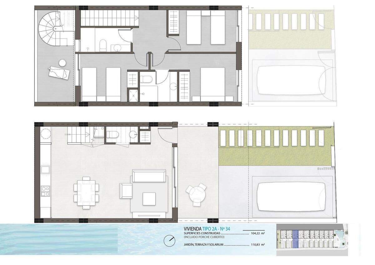 ÚJ ÉPÍTÉSŰ SORHÁZAK PILAR DE LA HORADADÁBAN Az új építésű lakóház 9 sorházat és ikerházat kínál közös medencével Pilar de la Horadadában, közel minden kényelmi szolgáltatáshoz. Olyan ingatlanok, amelyek valóra váltják álmait. Exkluzív otthonok 2 és 3 hálószobával, nyitott terű konyhával nappalival, beépített szekrényekkel, nagy szoláriumokkal, teraszokkal és kertekkel, terepjáró parkolóhellyel. Kiváló elhelyezkedés, 5 percre a homokos strandoktól és a legrangosabb 18 lyukú Lo Romero golfpályától. Pilar de la Horadada egy tipikus spanyol falu a Costa Blanca legdélebbi részén. A nagy főutcán szupermarketek, sok üzlet, étterem és bár, valamint néhány szép tér található. Torre de la Horadada és Mil Palmeras gyönyörű strandjai finom homokos sétánycal mindössze 5 percre találhatók. Corvera (Murcia) és Alicante repülőtere 40, illetve 55 percre található.