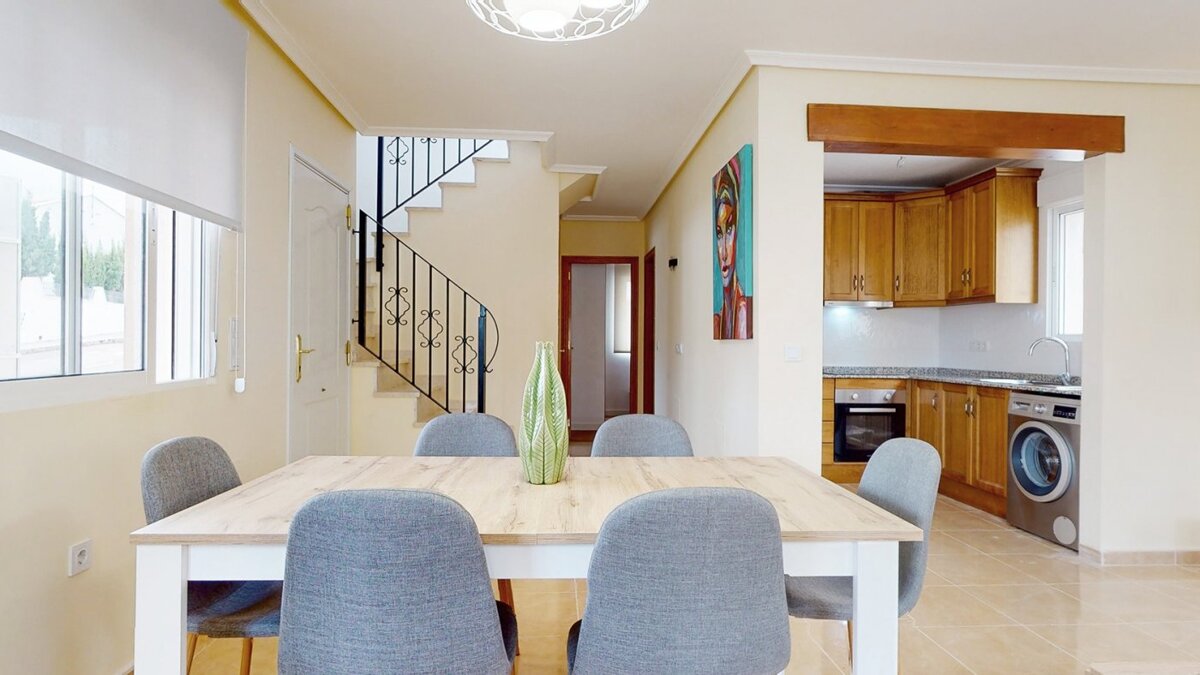 KULCSRAKÉSZ FÉLIG SORHÁZAK CSENDES VIDÉKI KÖRNYEZETBEN !! 2 és 3 hálószobás otthonok, kiváló minőségű belső és külső felülettel, csodálatos akadálytalan kilátással és nagyszerű integrációval a természeti környezetbe. Az egyedülálló természeti környezet lehetőséget kínál az egészséges életmódra; távol a stressztől, a zajtól, a szennyezéstől; röviden, valami paradicsomszerű. Ugyanakkor mindössze 6 km-re találhatók Torrevieja városának strandjai és szolgáltatásai. A házak hagyományos mediterrán építészeti stílusúak, természetes kőből és gránitból készültek, nagy kertekkel, saját szolárium terasszal és parkolóval a telkeken belül. Néhány szálláshoz egy pince is tartozik, ahol további 2 hálószoba helyezhető el. Egy gyönyörű közös medence teszi teljessé a közös helyiségek kínálatát. Az otthonok teljesen készek és készen állnak a beköltözésre.