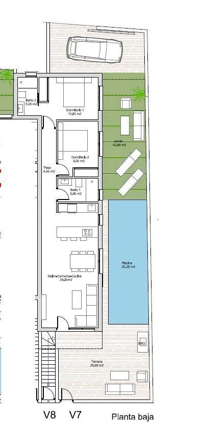 Modern otthonok Mindössze 800 méterre a strandtól Fedezze fel ezt az exkluzív, nyolc modern apartmanból álló fejlesztést Santiago de la Riberában, mindössze 800 méterre a tengertől. A modern esztétikával és kiváló minőségű kivitelben tervezett otthonok tágas belső terekkel, saját szabadtéri területekkel és csúcsminőségű kényelmi szolgáltatásokkal rendelkeznek. Szálláslehetőségek ? földszinti vagy penthouse Válassza ki az életmódjának leginkább megfelelő otthont: Földszinti bungalók: Élvezze a saját kertet, parkolóhelyet és saját medencét. Legfelső emeleti penthouse-ok: Dedikált parkolóhellyel, saját terasszal és tágas szoláriummal saját medencével, tökéletes pihenésre vagy szórakozásra. Minden otthon 2 vagy 3 hálószobával és 2 fürdőszobával rendelkezik, rugalmasságot biztosítva a különböző igényekhez. Kiváló minőségű felületek a kényelemért és a stílusért Minden otthon prémium anyagokkal és energiatakarékos rendszerekkel van felszerelve, többek között: Megerősített biztonsági bejárati ajtó Alumínium ablakok hőmegszakítóval a jobb szigetelés érdekében Bosch konyhai készülékek Légtermikus rendszer a melegvíz-hatékonyság érdekében Üveg zuhanyfalak minden fürdőszobában Légcsatornás légkondicionáló rendszer teljesen telepítve Kiváló elhelyezkedés Santiago de la Riberában A bájos tengerparti városban, Santiago de la Riberában található, Ez a fejlesztés a nyugalom és a kényelem tökéletes keverékét kínálja. Az eredetileg hagyományos halászfalu a Costa Cálida keresett célpontjává vált, amely mediterrán életmódjáról, aranyhomokos strandjairól és kiváló kényelméről ismert. A város 4 km-es stranddal büszkélkedhet a Mar Menor mentén, nyugodt, meleg vízzel, amely ideális úszáshoz és vízi sportokhoz. A part mentén gyönyörű, pálmafákkal szegélyezett sétány húzódik, amely tökéletes környezetet biztosít sétákhoz, kerékpározáshoz és tengerparti éttermek élvezetéhez. Kiváló összeköttetés és közeli látnivalók Strand (Playa de Santiago de la Ribera) ? 800 m Murcia-Corvera repülőtér ? 30 km Alicante repülőtér ? 95 km Golfpályák (Roda Golf, La Serena Golf, Lo Romero Golf) ? 10-15 km Dos Mares bevásárlóközpont ? 3 km Marina és Hajózási Klub ? 1,5 km Álmai tengerparti otthona vár Akár nyaralásra vágyik, befektetési lehetőség vagy állandó tartózkodási hely, ezek a bungalók modern kényelmet kínálnak verhetetlen tengerparti helyen. Lépjen kapcsolatba velünk még ma további részletekért és a látogatás egyeztetéséhez!