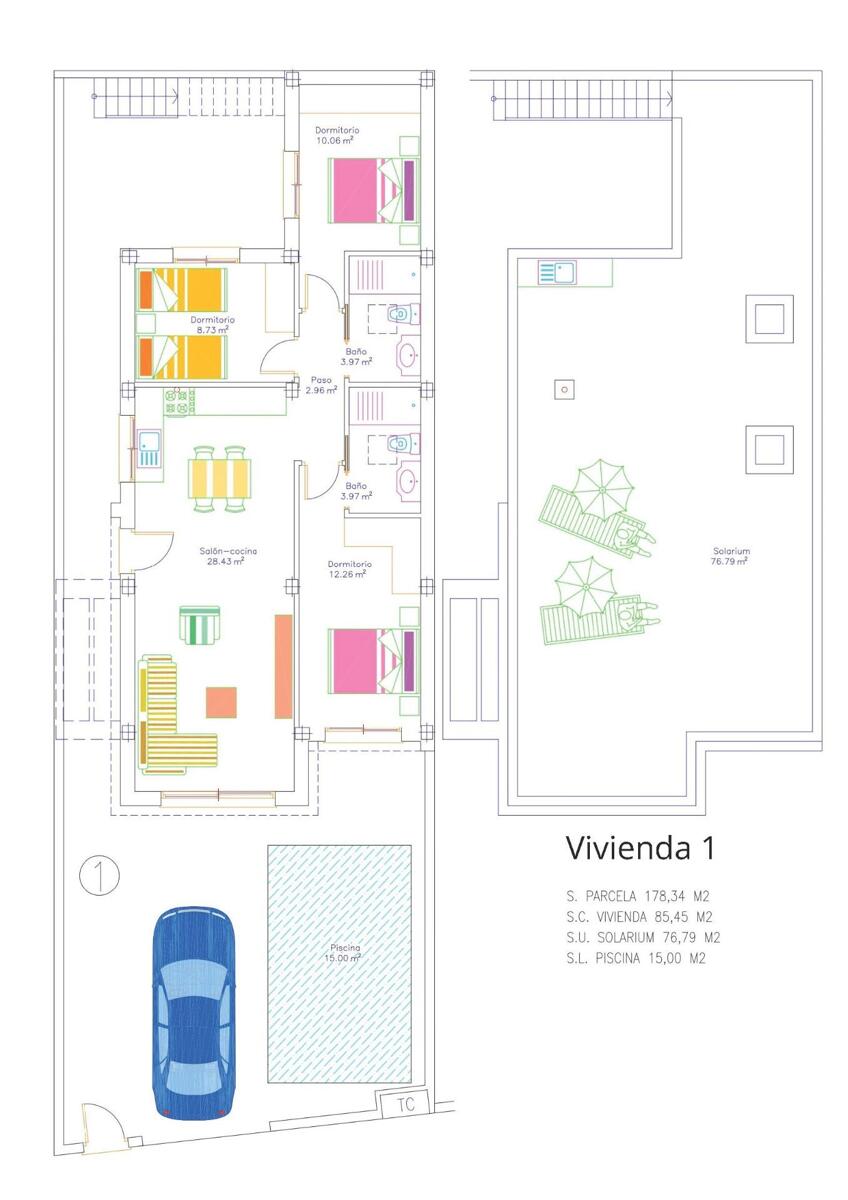 Modern élet saját medencékkel és prémium funkciókkal Ez az exkluzív új építési projekt mindössze három független villát kínál, amelyek mindegyike kortárs esztétikával és saját medencével rendelkezik, lépcsőzetes vízesésekkel. A murciai San Javierben található egyszintes házak három tágas hálószobával, két modern fürdőszobával, saját szoláriummal és parkolóval rendelkeznek a telken. A nyitott terű elrendezés egy teljesen berendezett konyhát és egy világos nappali-étkezőt integrál, zökkenőmentes és stílusos lakókörnyezetet teremtve. Kiváló elhelyezkedés San Javierben A nyüzsgő San Javier városában található villákat számos kényelmi szolgáltatás veszi körül, beleértve az üzleteket, éttermeket és sportolási lehetőségeket. A Mar Menor lenyűgöző strandjai mindössze 4 km-re találhatók, és tökéletesek a nyugodt, meleg víz melletti pihenésre, míg a Földközi-tenger partvidéke mindössze 10 perces autóútra fekszik. A golf szerelmesei értékelni fogják a 10 km-es körzetben található számos híres golfpálya, mint például a Roda Golf és a Mar Menor Golf közelségét. A modern kényelemre tervezve Minden villa a legmagasabb színvonalon épült, biztosítva a kényelmet és az energiahatékonyságot. Főbb jellemzők: Antracit PVC külső asztalos hőtöréssel és dupla üvegezésű ablakokkal az optimális napvédelem érdekében. Teljesen felszerelt konyha beépített készülékekkel, beleértve a hűtőszekrényt, sütőt, mikrohullámú sütőt, főzőlapot, páraelszívót és mosogatógépet. Légkondicionálás előtelepítés légcsatornán keresztül. Aerotermikus melegvíz-rendszer a környezetbarát élethez. Nagy biztonságú páncélozott bejárati ajtók és automatizált járműkapuk videó kaputelefonnal. Szabadtéri szolárium nyári konyhával, tökéletes szórakozásra. A legfontosabb látnivalók megközelíthetősége San Javier kiváló összeköttetéssel büszkélkedhet, így ideális választás egész évben vagy nyaralóként. Murcia-Corvera repülőtér: 30 km Alicante repülőtér: 75 km Zenia Boulevard bevásárlóközpont: 30 km Los Alcázares kikötő: 7 km Golfpályák: 10 km-en belül Különböző lehetőségek 10 km-en belül Álmai otthona vár Élvezze a modern dizájn, a prémium funkciók és a kiváló elhelyezkedés tökéletes keverékét San Javierben. Ne hagyja ki a lehetőséget, hogy birtokolja ezeket a limitált kiadású villákat, és megtapasztalja a mediterrán élet legjavát. További információért vagy megtekintés ütemezéséhez lépjen kapcsolatba velünk még ma.